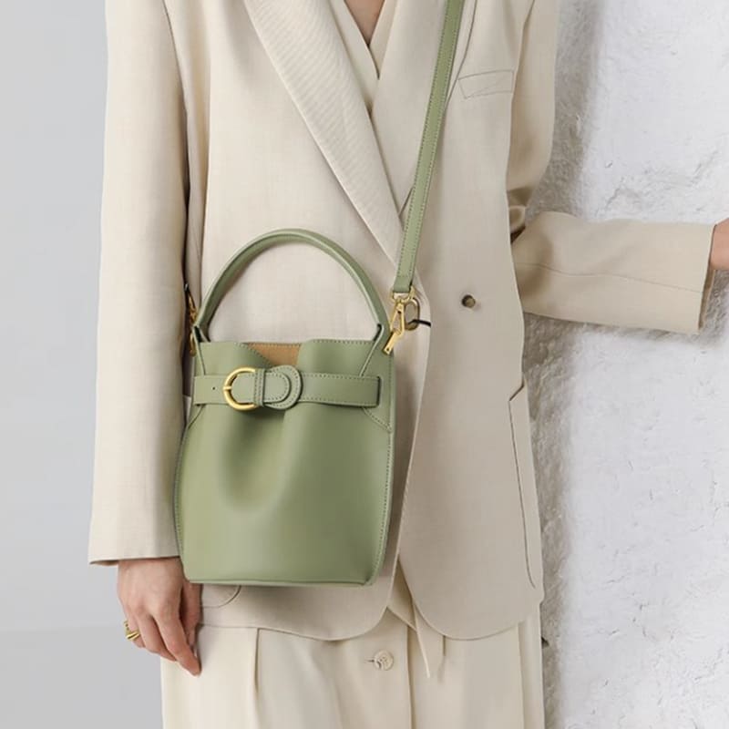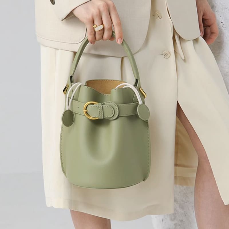 This bucket strap bag is made of waterproof cow leather and has a smooth lining inside. Soft to the touch, not easily deformed, and able to stand.