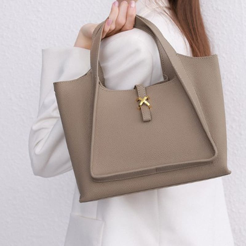 Tote bag is a soft and stylish inner and outer mother bag with a combination design, suitable for daily use. The shell is made of high-quality top-layer cowhide, which has excellent hand feel and wear resistance. The internal mother and child bag can accommodate items of different sizes, making it easy to carry around.